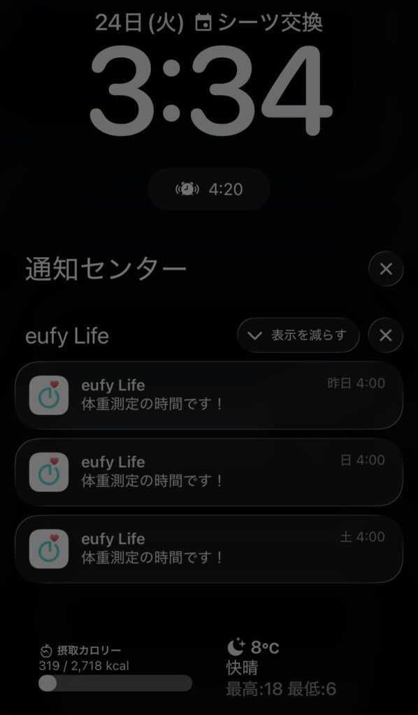 eufy Lifeアプリ 通知画面