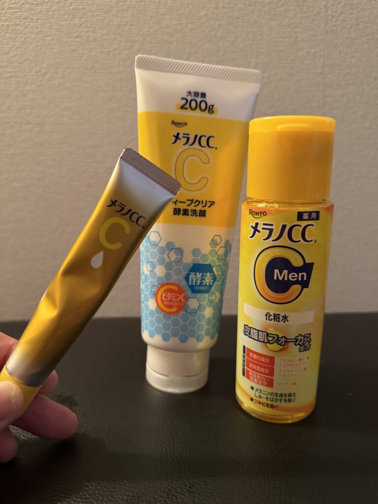 使えます。メラノCCシリーズに「男性専用」「女性専用」という区分はなく、 ビタミンCはメラニン生成の抑制や抗酸化作用を持つ成分です。 性別ではなく、肌の状態(乾燥しやすい・敏感など)に応じて使い方を調整するのが重要です。 筆者(34歳男性)は現在使用中で、特に性差による使いにくさは感じていません。